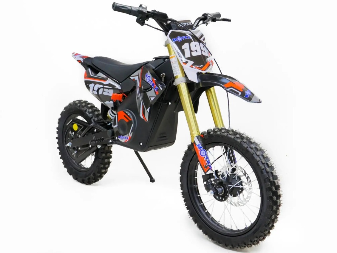Электрический мотоцикл MOTAX кросс 12/14 1500W оборудован мощным двигателем 1500W и колёсами размерностью 12 дюймов заднее и 14 дюймов переднее. Электрический миникросс рассчитан на детей и подростков от 7 до 14 лет.